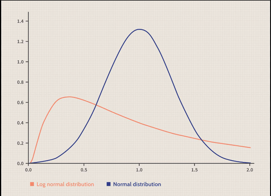 - Lognormal Distribution: Asset prices often follow a lognormal distribution. If a random variable X is lognormally distributed with mean μ and standard deviation σ, then its probability density function is given by: