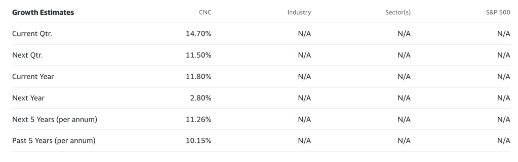 What I do is go to Yahoo finance page for the stock I picked. For example I picked CNC (Centene corporation).